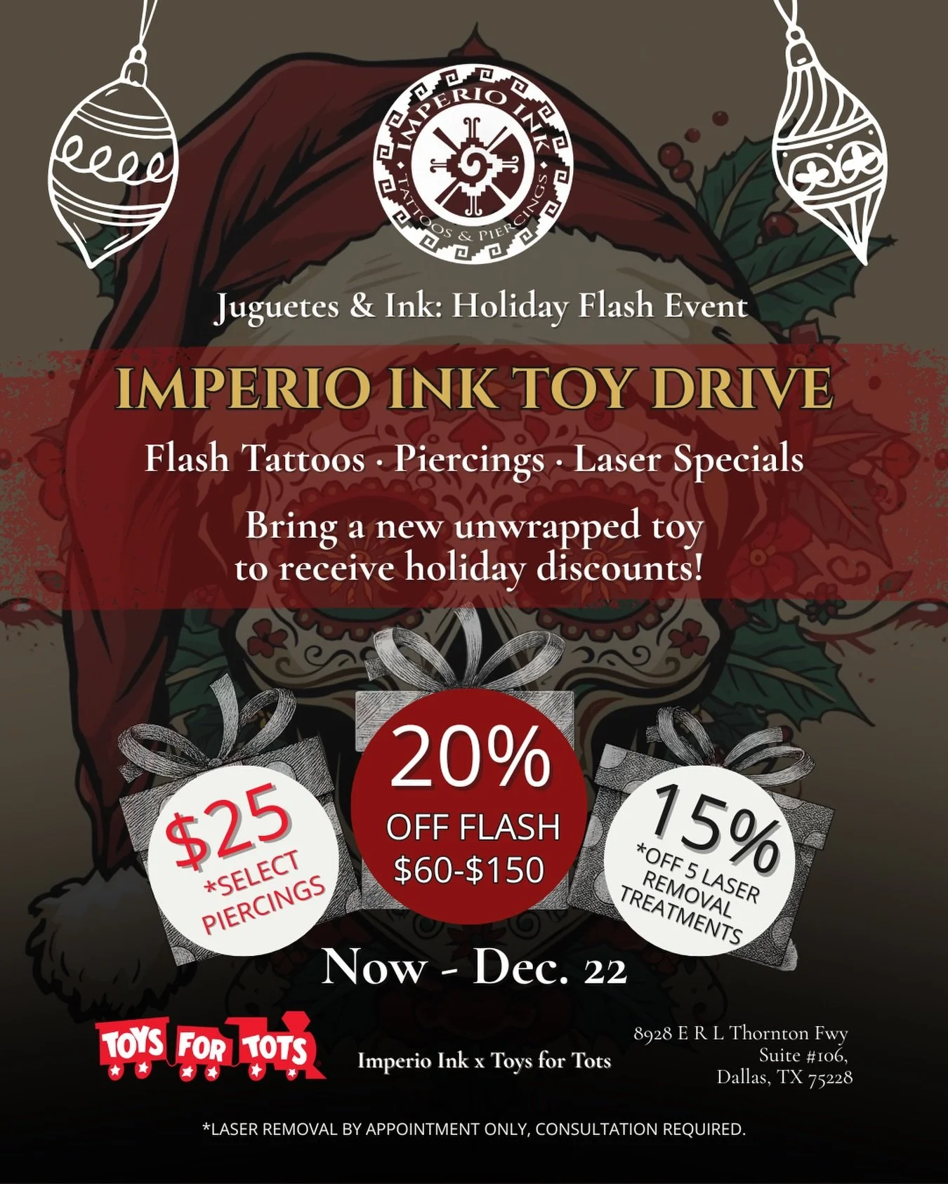 Founded on family values and cultural pride, Imperio Ink is a Mexican-owned tattoo studio with deep roots in the Dallas community. With more than a decade of industry experience and multiple award-winning artists, we are committed to delivering high-quality body art in a safe, professional, and respectful setting.